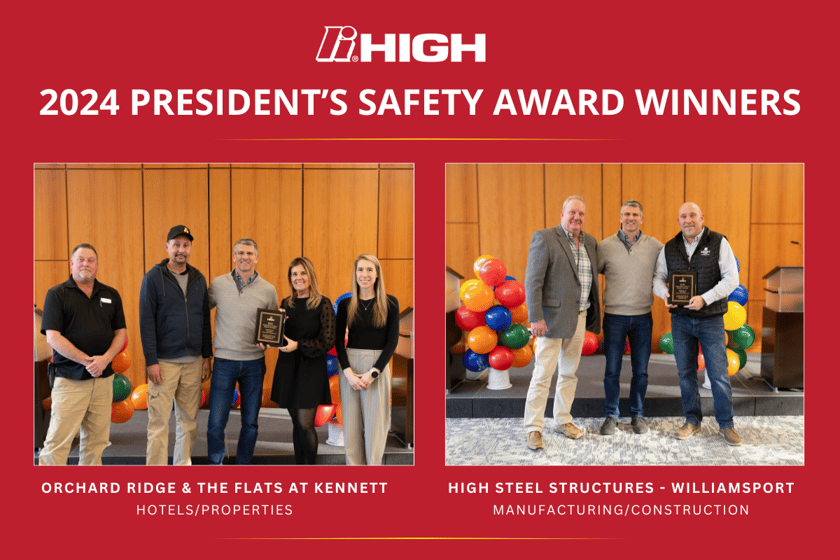 The High Executive Committee selected three Safety Circle Award recipients for President’s Safety Awards: High Steel Structures – Williamsport, an affiliate of High Industries Inc., received the award in the Manufacturing/Construction category, and the Hotels/Properties award was presented to Orchard Ridge, Pottstown, PA and The Flats at Kennett, Kennett Square, PA.